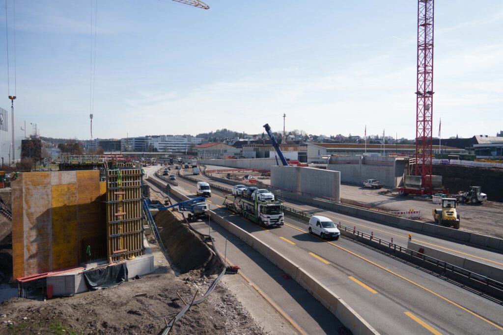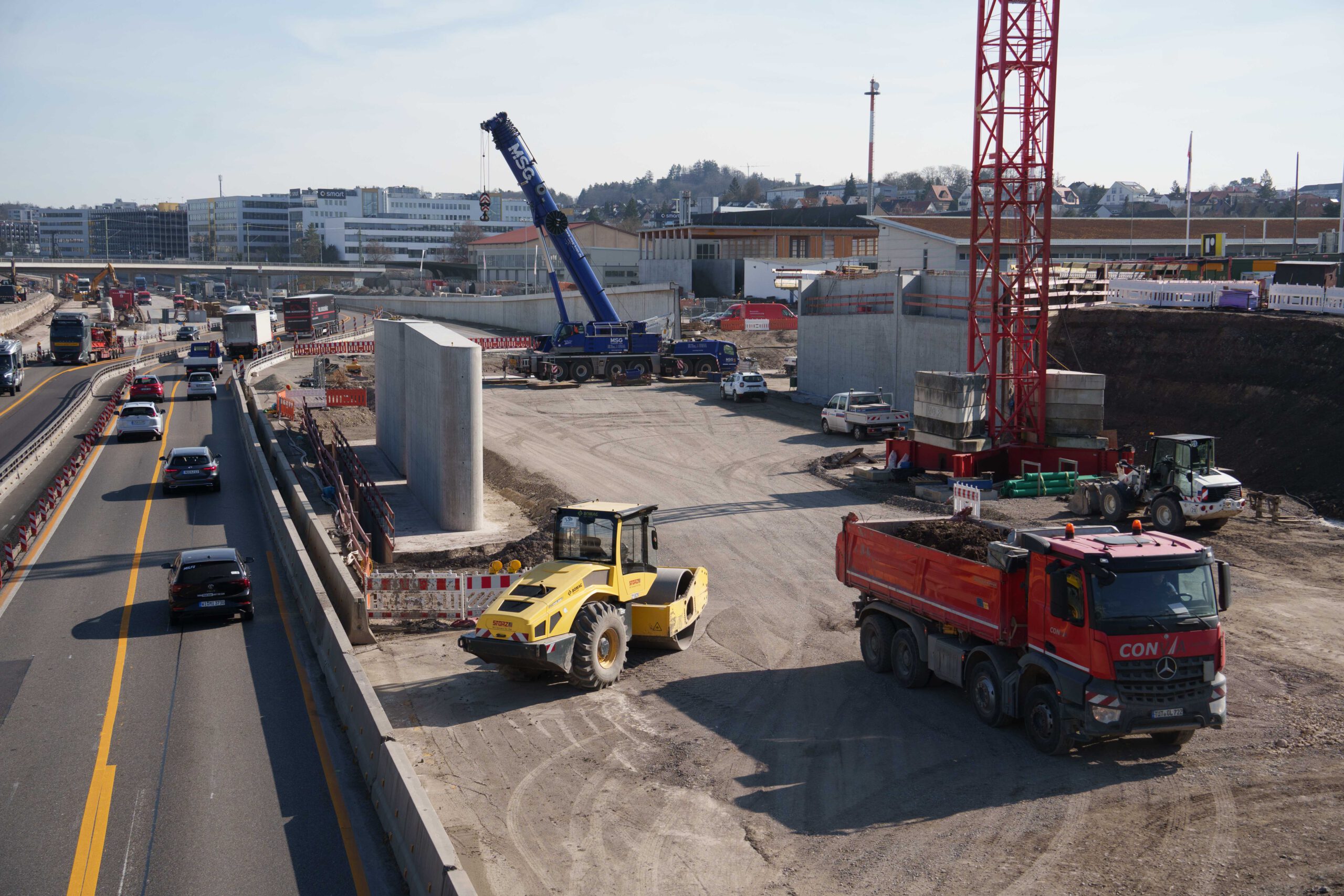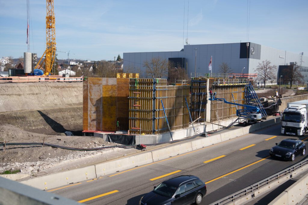 Baufortschritt für die neue Brücke an der Wolfgang-Brumme Allee über die A8