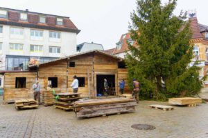 Dennis Schauz vom Erdinger, der den Sindelfinger Hüttenzauber betrieben hatte, rechnet damit, dass der Abbau bis Dienstagvormittag vollständig abgeschlossen ist. Anschließend sollen alle Bauteile auf zwei Lastwagen verladen und abtransportiert werden. Anfang der kommenden Woche wird dann noch der große Weihnachtsbaum entfernt.